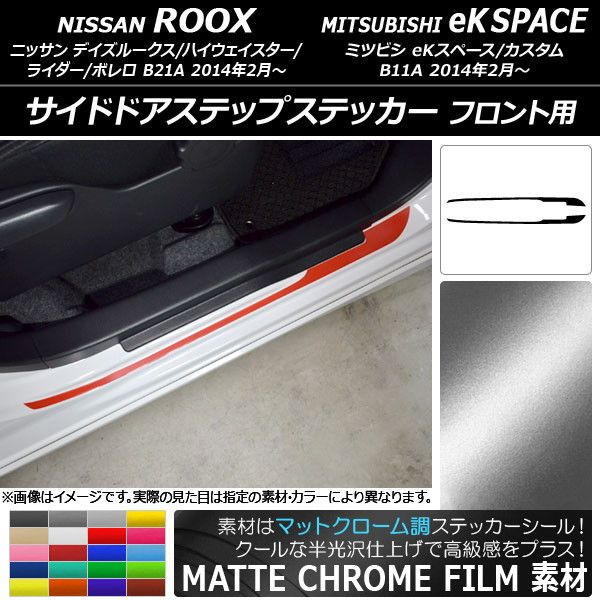 AP サイドドアステップステッカー マットクローム調 フロント用 ニッサン/ミツビシ デイズルークス/eKスペース 選べる20カラー AP-MTCR3574 入数:1セット(2枚)