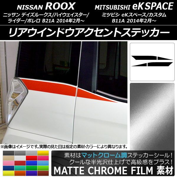 AP リアウインドウアクセントステッカー マットクローム調 ニッサン/ミツビシ デイズルークス/eKスペース 選べる20カラー AP-MTCR3544 入数:1セット(4枚)