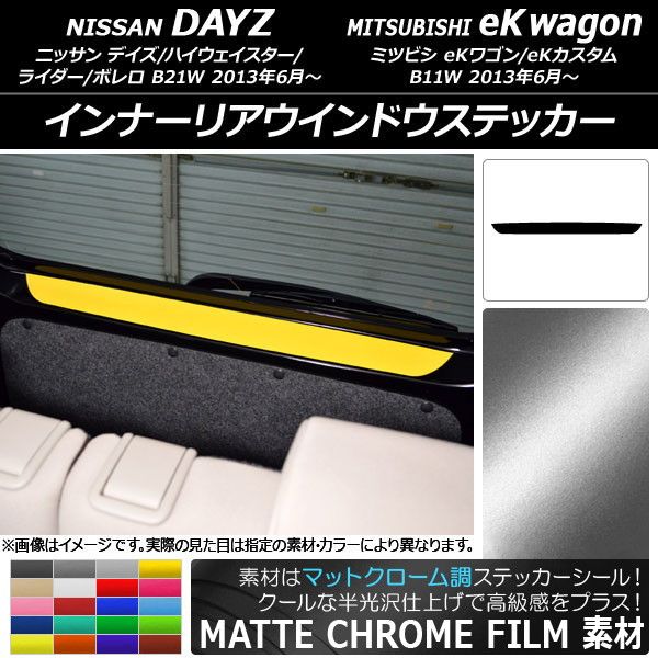 インナーリアウインドウステッカー ニッサン/ミツビシ デイズ/eKワゴン B21W/B11W 前期/後期 2013年06月〜 マットクローム調 選べる20カラー AP-MTCR3708