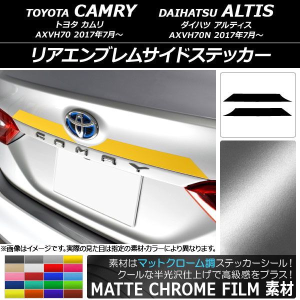 リアエンブレムサイドステッカー トヨタ/ダイハツ カムリ/アルティス XV70系 2017年07月〜 マットクローム調 選べる20カラー AP-MTCR3112 入数:1セット(2枚)