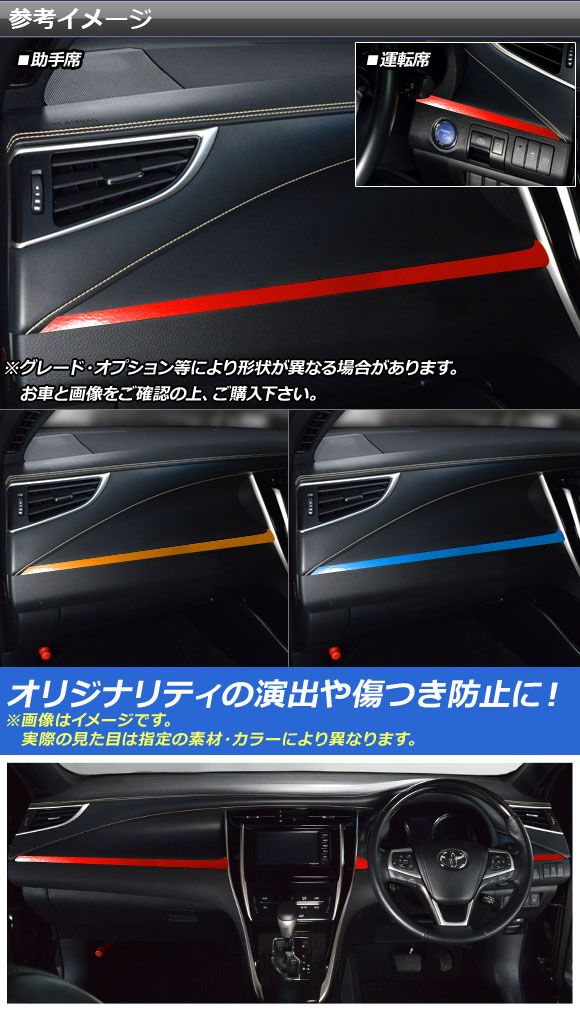 AP フロントパネルステッカー クローム調 トヨタ ハリアー/ハリアーハイブリッド 60系 2013年12月〜2020年05月 選べる20カラー AP-CRM4184 入数:1セット(3枚)
