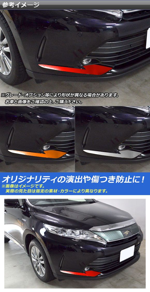 AP フロントバンパーサイドステッカー クローム調 トヨタ ハリアー/ハリアーハイブリッド 60系 GRスポーツ不可 選べる20カラー AP-CRM4202 入数:1セット(2枚)