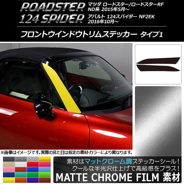 AP フロントウインドウトリムステッカー マットクローム調 タイプ1 ロードスター/RF/124スパイダー ND系/NF2EK 選べる20カラー AP-MTCR2503 入数:1セット(2枚)