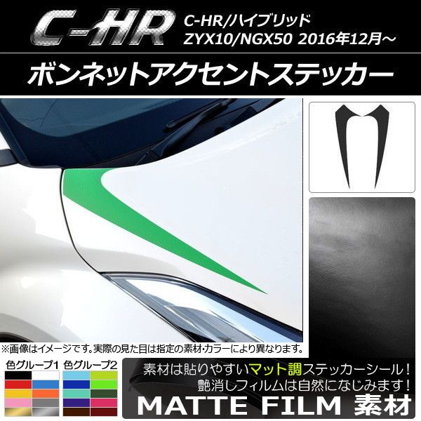 ボンネットアクセントステッカー トヨタ C-HR NGX10/NGX50 ハイブリッド可 マット調 色グループ1 AP-CFMT1048 入数:1セット(2枚)