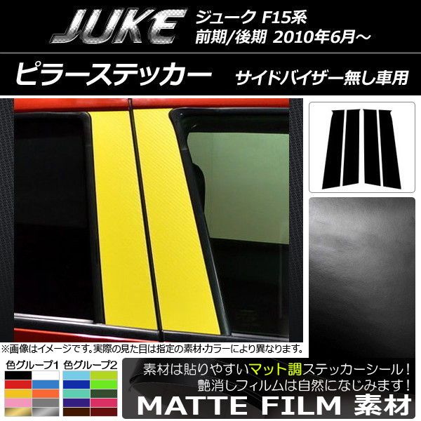 ピラーステッカー ニッサン ジューク F15系 前期/後期 サイドバイザー無し車用 マット調 色グループ1 AP-CFMT1852 入数:1セット(4枚)