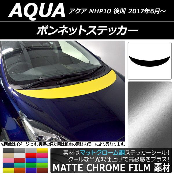 AP ボンネットステッカー マットクローム調 トヨタ アクア NHP10 後期 2017年06月〜 選べる20カラー AP-MTCR3374
