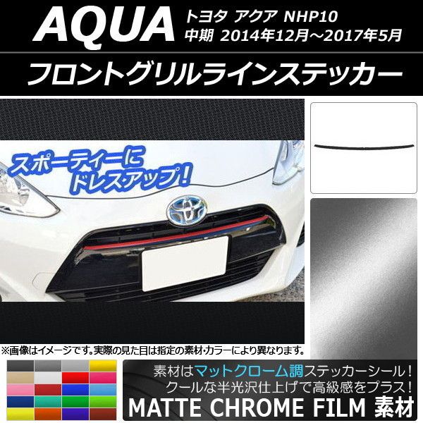 フロントグリルラインステッカー トヨタ アクア NHP10 中期 2014年12月〜2017年05月 マットクローム調 選べる20カラー AP-MTCR611