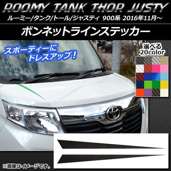 ボンネットラインステッカー ルーミー/タンク,トール,ジャスティ M900/M910 カーボン調 選べる20カラー AP-CF1114 入数:1セット(2枚)