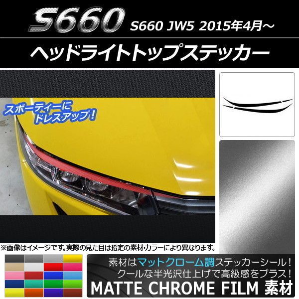 ヘッドライトトップステッカー ホンダ S660 JW5 2015年04月〜 マットクローム調 選べる20カラー AP-MTCR2018 入数:1セット(4枚)