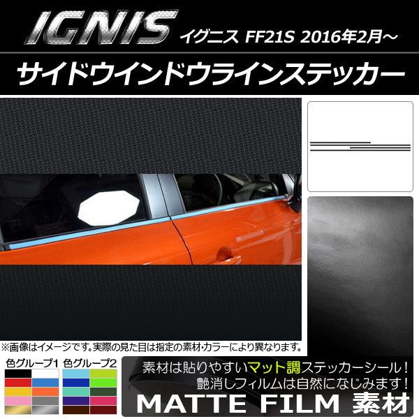 AP サイドウインドウラインステッカー マット調 スズキ イグニス FF21S 2016年2月〜 色グループ1 AP-CFMT1636 入数:1セット(4枚)