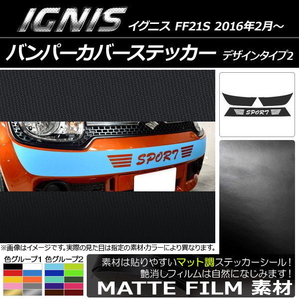 バンパーカバーステッカー スズキ イグニス FF21S 2016年02月〜 マット調 デザインタイプ2 色グループ1 AP-CFMT1672