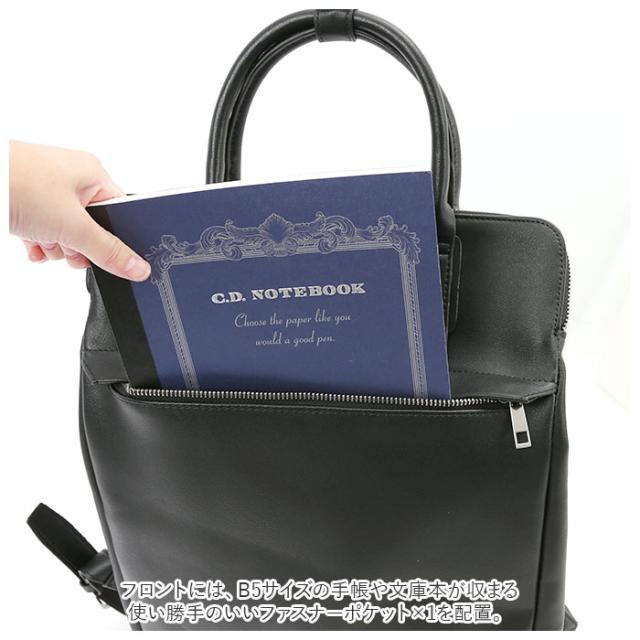 | 商品説明 | ・シンプルなルックスがビジネスシーンにフィット!スタイリッシュな「Rename 合皮ビジネスリュック」が新登場。 ・スクエア型のボディ全体を高品質なPUフェイクレザーで仕上げた、シックで凛とした佇まいが魅力。 ・メインルームは、B4ファイルがジャストに収まり、ノートPCやタブレットの持ち歩きに最適なサイズ感。 ・開口部は左右から自在に開くダブルファスナー仕様になっているため、書類やモバイル端末の取り出しがスムーズ。 ・メインルームの内側の2つのオープンポケットは、スマホやパスケースなど取り出し頻度の高い小物収納にオススメ。 ・フロントには、B5サイズの手帳や文庫本が収まる使い勝手のいいファスナーポケット×1を配置。 ・リュック背面はクッション性・通気性に優れたメッシュ生地仕様なので、長時間背負う時でも快適。 ・ビジネスリュックとしてはもちろん、しっかりと握れるハンドルでブリーフケースとしても大活躍。 ・必要最低限のツールだけが収納できる、マチの薄いスリムなデザインが、スーツスタイルにもカジュアルスタイルにも絶妙にマッチ。 |