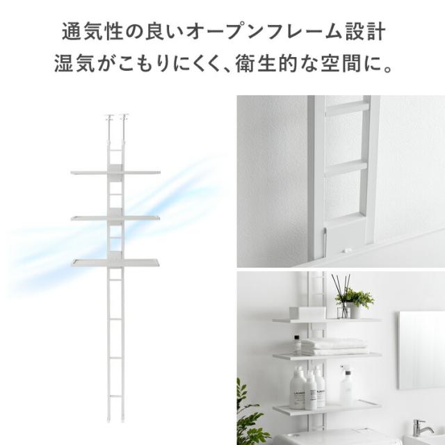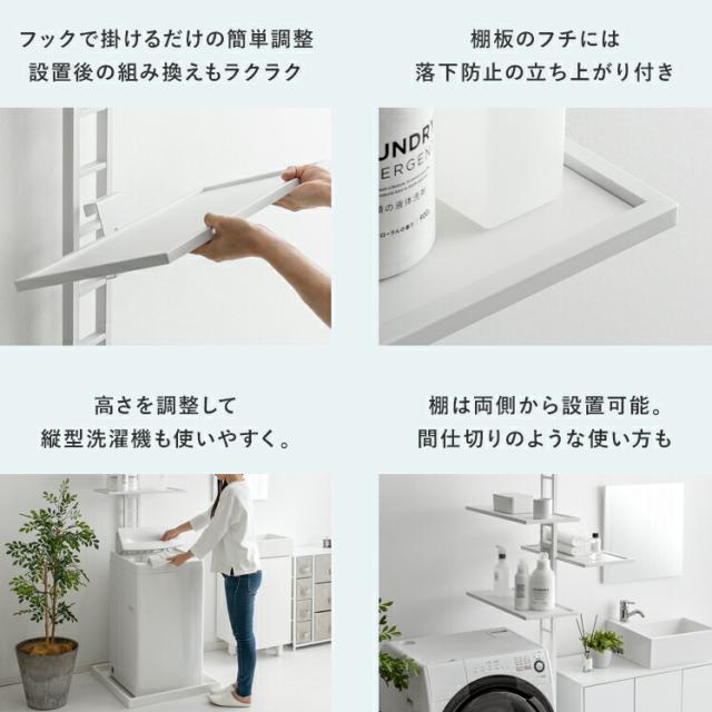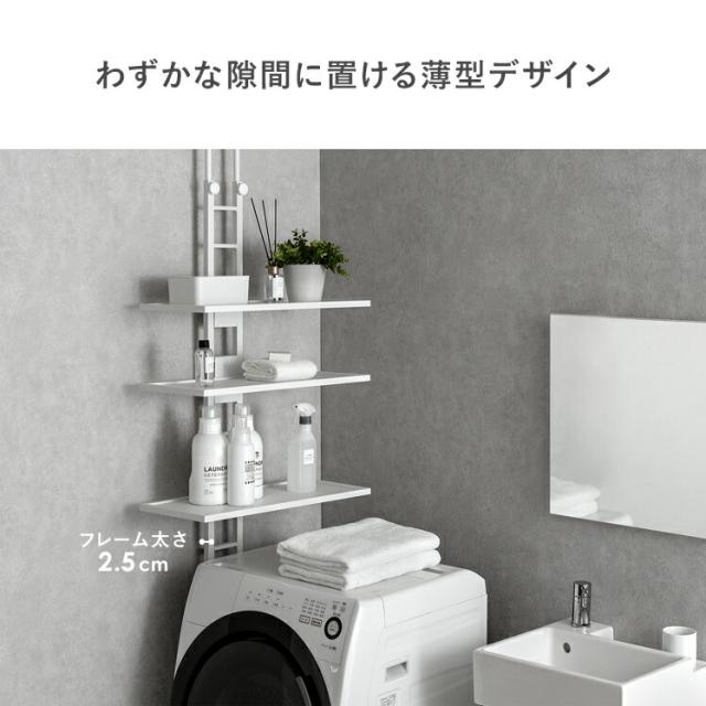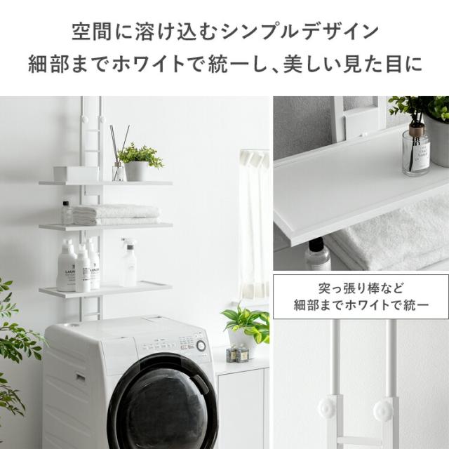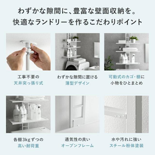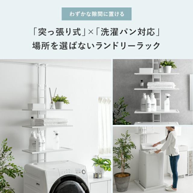 ランドリーラック 突っ張り スリム つっぱり 縦型洗濯機 ドラム式対応 防水パン 設置 洗濯かご 棚板 3段 洗濯機 棚 収納 洗濯機収納 収納棚 洗濯機ラック