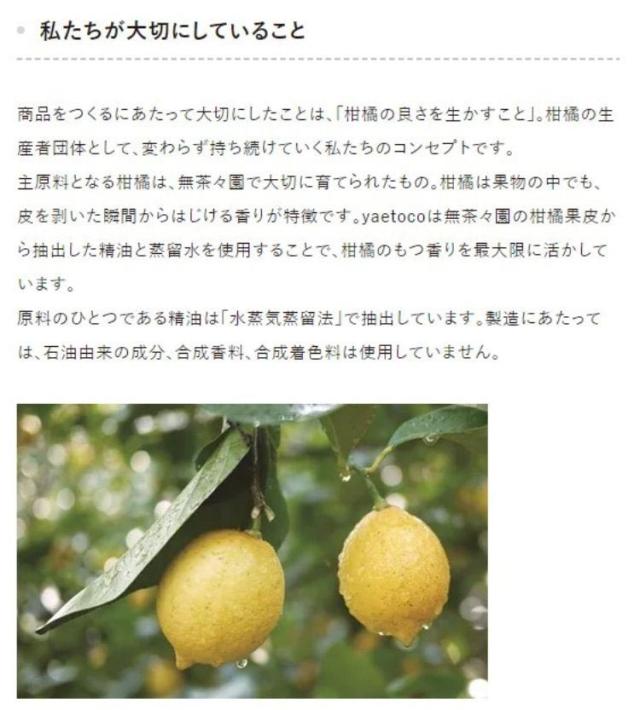 ●香りづけに使用するレモン果皮油は、搾汁した後に残った果皮を蒸留して抽出したものを使用した「畑でできたものを余すことなく」をコンセプトにしたアイテムです。