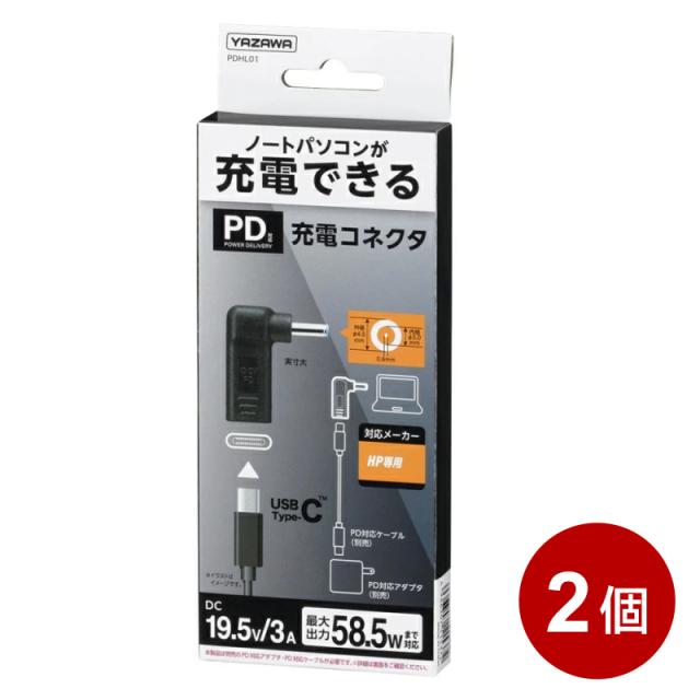 ヤザワ USB PD対応 充電コネクタ 2個セット HP用 ノートパソコン用 USB充電 変換コネクタ Type C PDHL01-2P メール便送料無料