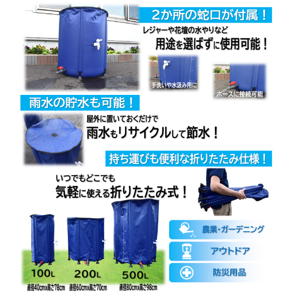 シンセイ 510096 折りたたみ式 水タンク 500L 直径80cm x 高さ98cm 農業・ガーデニング・アウトドア・防災用品として 【沖縄県・離島部配達不可】【代引不可】