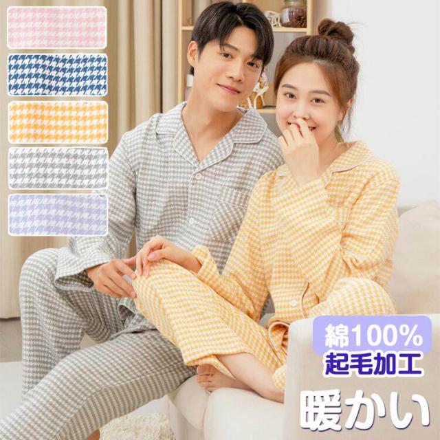 パジャマ 春 秋 冬 あったか 前開き 綿 綿100 起毛加工3重ガーゼ レディース メンズ パジャマ 春 秋 冬 あったか 前開き 綿 綿100 ガーゼ 三重ガーゼ トリプルガーゼ 送料無料 秋 ルームウェア 女性 男性 紳士用 婦人用 長袖 千鳥柄
