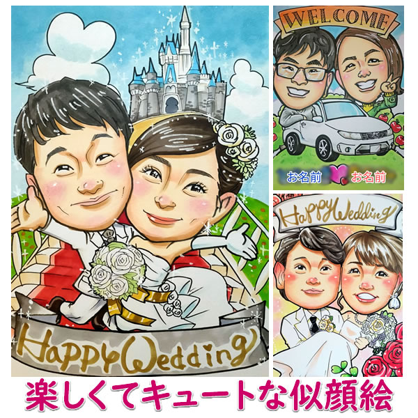 ウェルカムボード 似顔絵 プレゼント 両親 プレゼント 結婚式 ウェディング ブライダル 贈答品 贈答用 サンクスボード 和 写真 玄関 記念品 ウェディングボード 楽しくてキュートな似顔絵