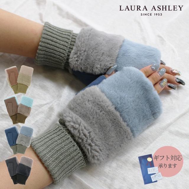 手袋 レディース ローラアシュレイ スマホ対応 人気 ブランド 指先フリー エコファー かわいい ふわふわ 防寒 暖かい LAURA ASHLEY クリスマス プレゼント