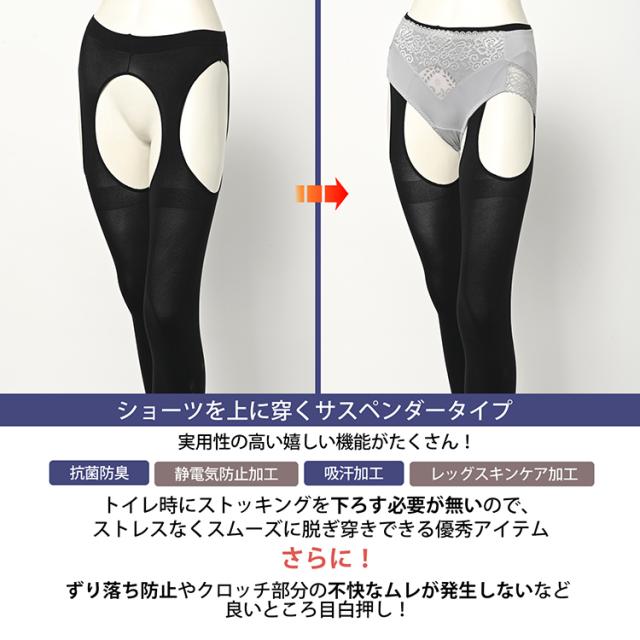 大きいサイズ レディース インナー サスペンダーレギンス サスペンダータイプ 日本製 パンティ部レス パンティ部オープンタイプ マチ無し レッグウェア インナーウェア 10分丈レギンス 80デニール トイレが楽 蒸れにくい 消臭加工 静電気防止加工 吸汗加工 さらさら レッグスキンケア加工 股ズレ防止 つま先補強 太ももゆったり 快適フィット 伸縮 ストレッチ よく伸びる カジュアル フェミニン 便利 おしゃれ 着こなし コーデ デイリー 普段使い オフィス 通勤 冠婚葬祭 女性用 婦人用 黒 春 夏 秋 冬 オールシーズン 3L 4L 5L 6L 7L 8L XXXXXXXL 2XL 3XL 4XL 5XL 6XL 7XL ns-2866slg