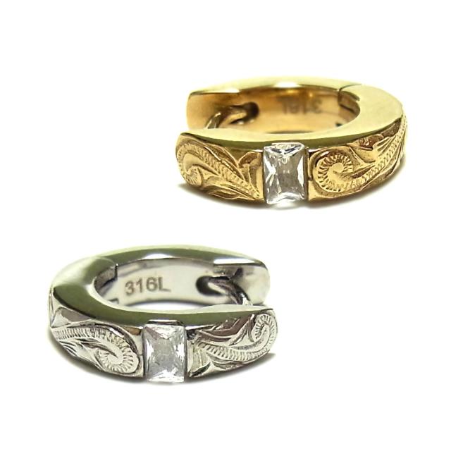 ピアス ハワイアンジュエリー 片耳用 キュービック フープ ステンレス 金属アレルギー対応
