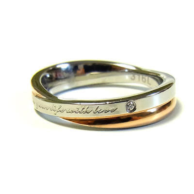 CZステンレスリング ピンクゴールド メッセージ キュービックジルコニア