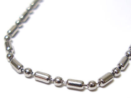 変色しない、傷・汚れにも強く、アレルギーを起こしづらい安心な素材です。コンビステンスチェーン!どんなトップにも合うALLマイティーアイテム。ボールと長方形のコンビにより、一味違う面持ち!