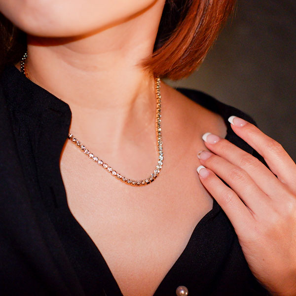 【ボヘミアンリゾート】ボヘミアンスタイルを通し、ジプシーのように習俗に捉われない、自由奔放な生き方そのもの”と言う意味を表現しました。テニスネックレス(ダイヤモンドCZ)首に沿うような滑らかさと着け心地にうっとり。取り入れるだけでぐっと伝統的な上級者な印象に仕上げてくれます。