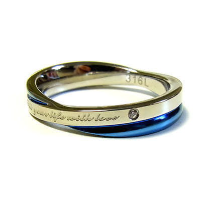 CZステンレスリング ブルー メッセージ キュービックジルコニア