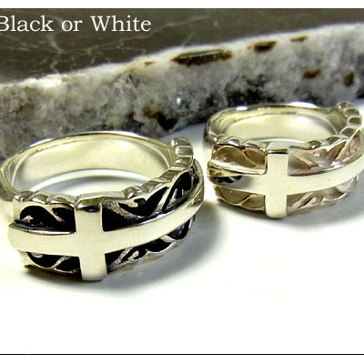 シルバーリング クロス 唐草 メンズ Black or White 指輪