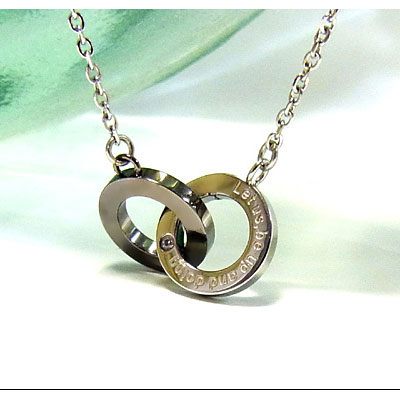 2リングメッセージステンレスネックレス ステンレスアクセサリー CZ プレゼント