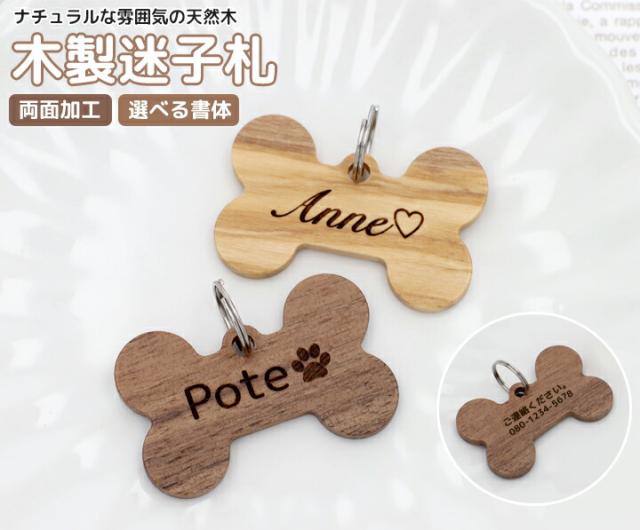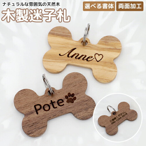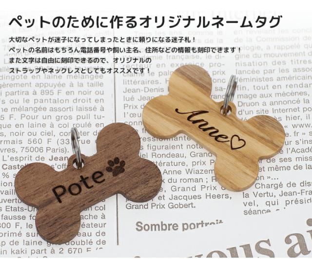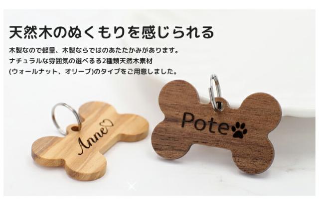 天然木 木製 迷子札 IDタグ 【名入れ無料】超軽量 ペット 犬 猫 わんちゃん リング3個付 ウッド ウォールナット オリーブ木 ネームタグ 首輪 名前 タグ オリジナル 小・中・大型犬用 お名前&電話番号刻印 飼い主 刻印無料サービス 迷子札 aruon 名入れ工房