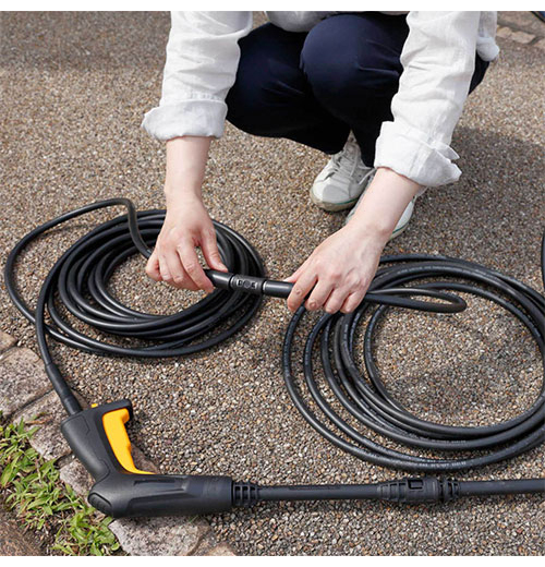 従来製品で採用している高圧ホースから約40%柔軟性がUPしているので、洗浄中にホースを気にする必要がなくスムーズに作業できます。