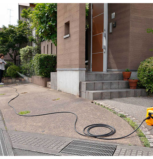 静音なので近所に気兼ねなく高圧洗浄もできて、軽量で持ち運びも容易です。