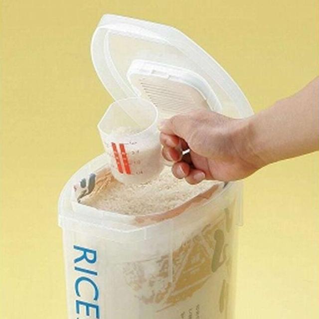 5kgの米袋を縦方向にそのまま収納・保存ができる米びつです。袋のまま収納できるので、移し替える手間が省けます。重いお米を米びつへ移し替える面倒も解決。お手入れもしやすいです。