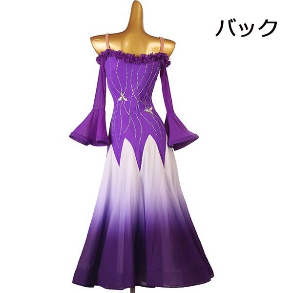 社交ダンスドレス ワンピース モダンダンス モダンドレス ダンスドレス ワルツ専用 ロング丈 長袖 ワルツ 広がる裾ドレス レッスン着 競技着デモ用 スタンダード 発表会用 演出服 キャミソール フリル パープル S M L XL 2XL db070s1s1la