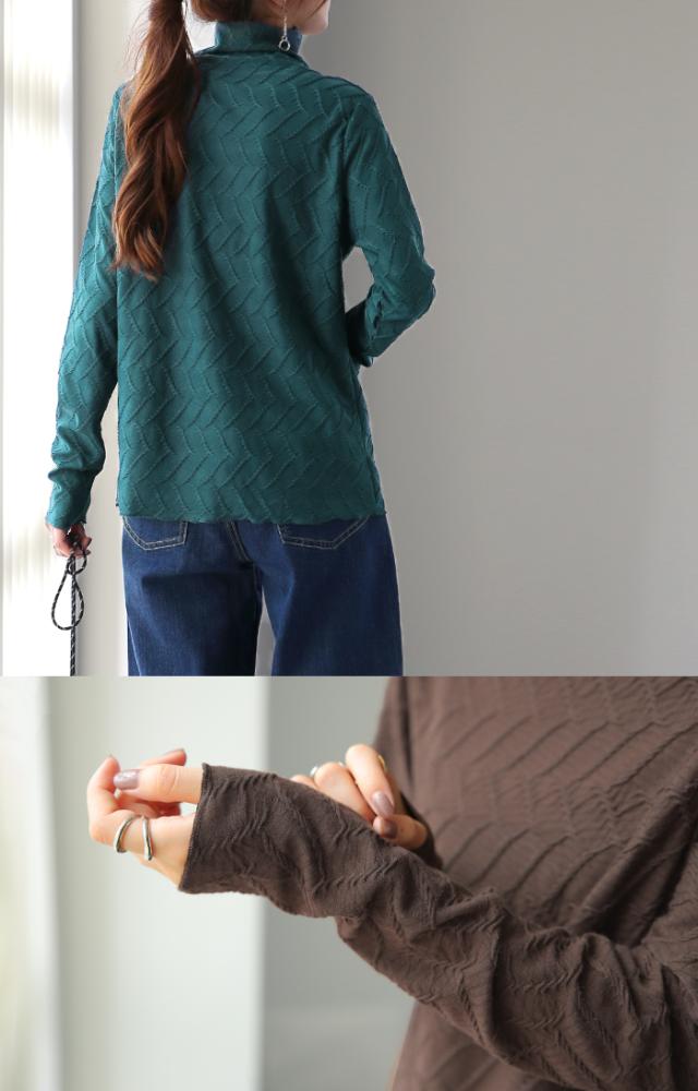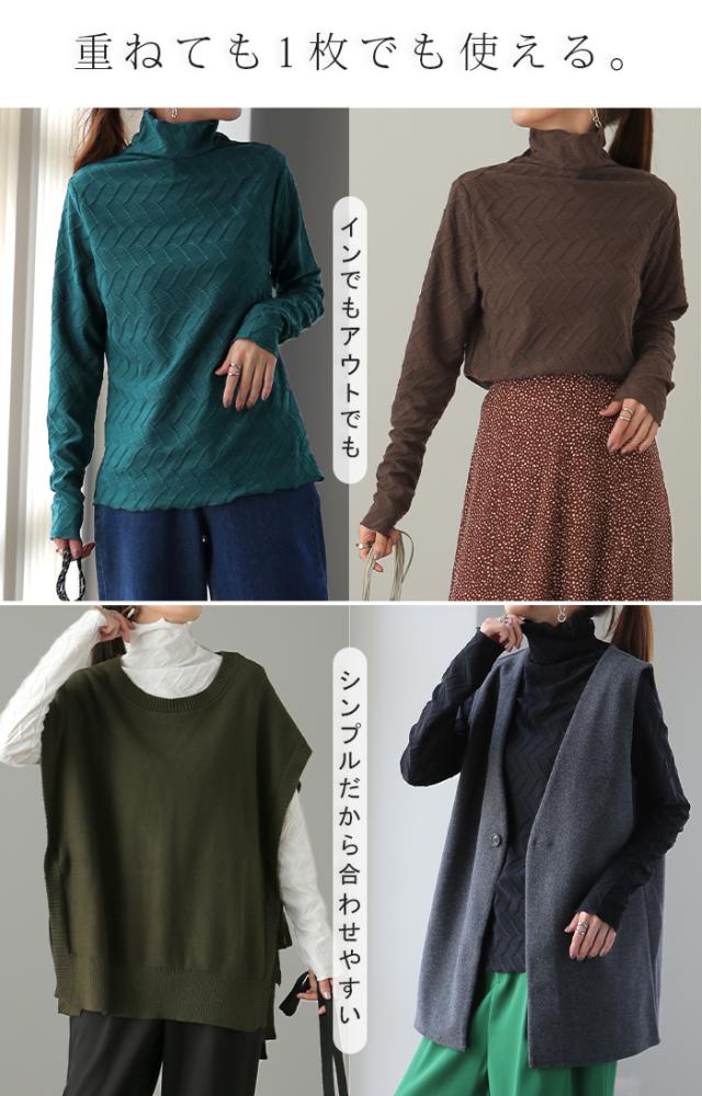 1枚でもインナー使いとしても使いやすいタートルネックトップスです。