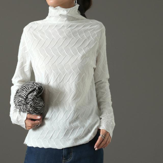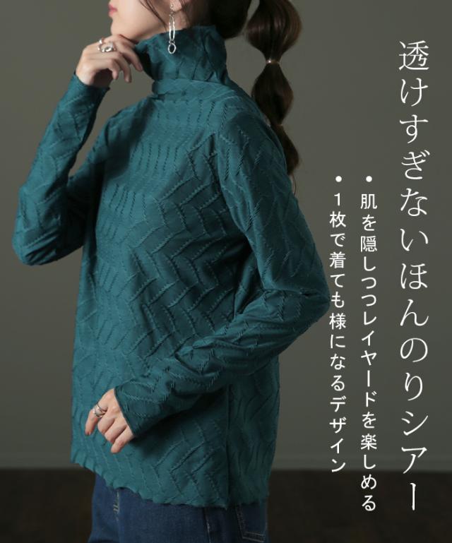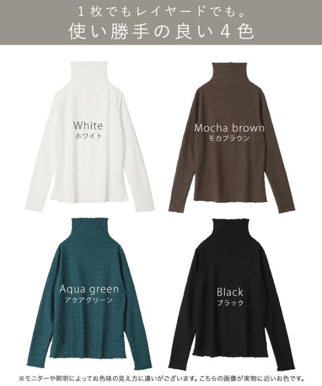 【売り尽くしSALE】「 立つ。」 ハイネック トップス インナー カットソー タートルネック レディース 肌隠し 立ち襟 薄手 長袖 無地 レイヤード 重ね着 インナートップス シボ感 立体 刺繍 シアー タートル 透け感 ブラック 黒 白 冬 秋 HUG.U 秋新作