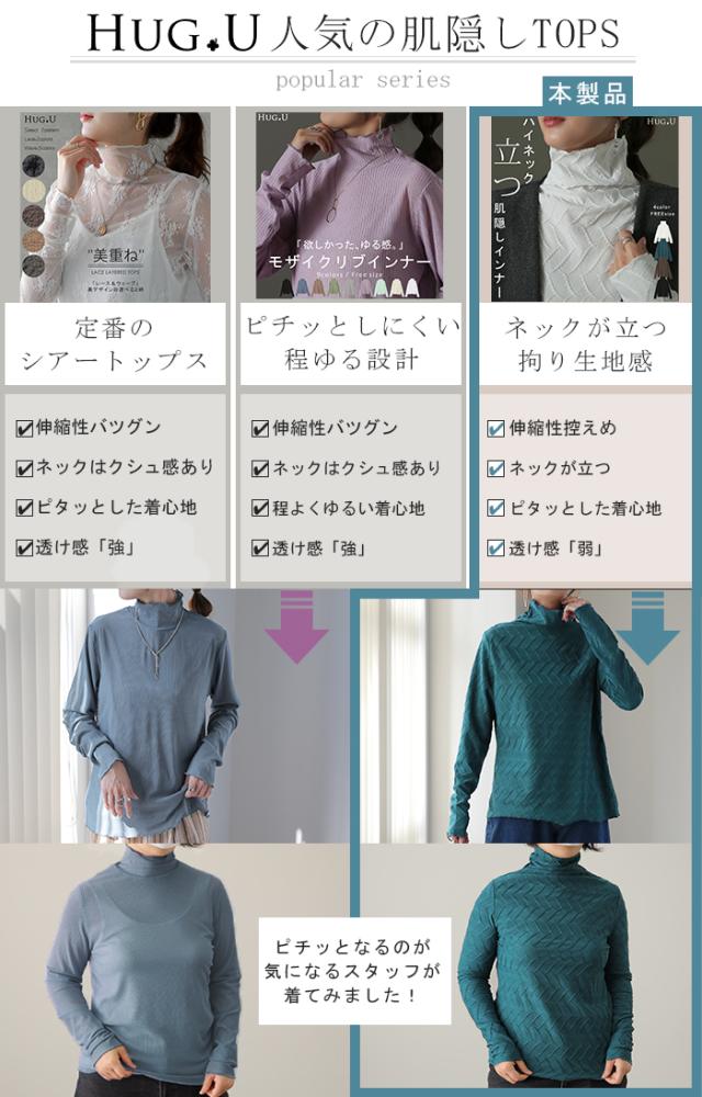 デコボコ 凸凹 ハイネックインナーカットソー ハイネックインナー レイヤードインナー レイヤードカットソー ハイネックカットソー ト タートルインナー タートルカットソー シースルー シアー シアートップス シースルートップス シアーインナー シースルーインナー 肌着 下着 フィット タイト フィット感 無地 シンプル 体型カバー ロンティ ロンT ロンTee Tee 長袖 長そで 十分袖 十分そで 10分袖 ロング ロングスリーブ 長い 長め ベーシック スタンダード 重ね着 薄手 薄い 着回し しわ隠し 首元 手元 隠す ハイネックトップス ボトルネック レイヤードTシャツ レイヤード オーバーサイズ 大きめ 大きい ストレッチ 伸縮 ビック ビッグ ビッグシルエット ビックシルエット カジュアル 抜け感 お尻が隠れる 着痩せ レディースファッション 旬 トレンド ゆったり ゆる ゆったりサイズ ゆるカジ ゆるい ゆるファッション ランチ フリーサイズ フリー S M L LL 2L XL 3L XXL LLL デート お出かけ 旅行 飛行機 ナチュラル 大人カジュアル ベーシック シンプル オフィス オフィスカジュアル テレワーク リモートワーク リモート オンライン飲み会 おうち時間 お家時間 着回し 母の日 プレゼント ギフト 贈り物 クリスマス シンプル 大人 大人カジュアル オトナ 女性 綺麗 綺麗目 きれい キレイ キレイめ キレイメ きれいめ 高見え 上質 上品 20代 30代 40代 50代 おしゃれ お洒落 オシャレ 可愛い かわいい カワイイ カッコいい 格好良い カッコイイ ブラック 黒 黒色 ホワイト 白 白色 グリーン 緑 緑色 アクア アクアグリーン ブラウン ダークブラウン モカ モカブラウン 茶 茶色 春 夏 秋 冬 春夏 秋冬 HUG.U HUGU ハグユー はぐゆー