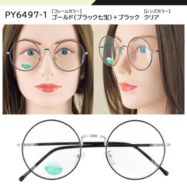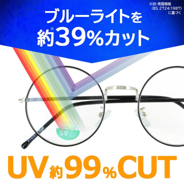 ブルーライトカットメガネ PCメガネ おしゃれ ブルーライト 紫外線カット メガネ 伊達メガネ UVカット 度なし パソコンめがね UVカット だてメガネ ダテ おしゃれ PY6497 PYB104 ラウンド 七宝 クリングス鼻パッド クリアレンズ 男性 女性 紫外線対策 ゆうパケット 送料無料