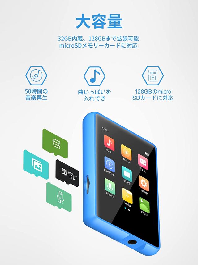 Bluetooth5.0ミュージックプレーヤーは、様々な機能が備えて、使用便利なMP3プレーヤーです。