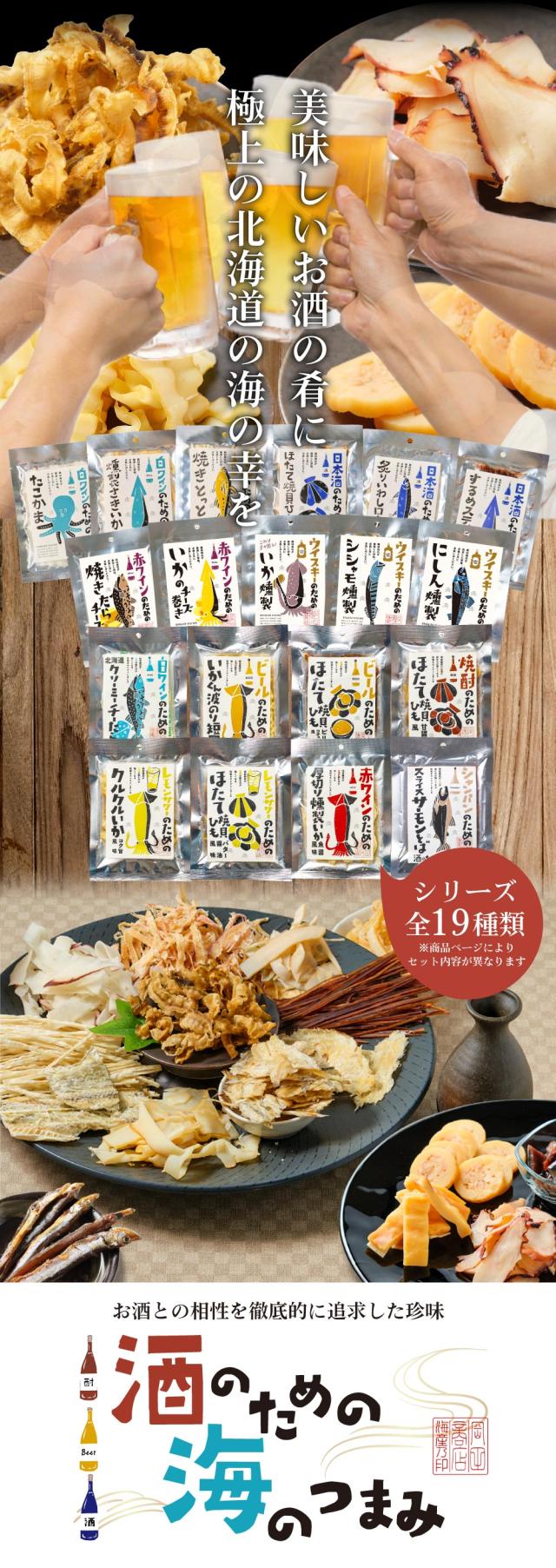| 商品説明 | 「美味しいお酒の肴に、極上の北海道の海の幸を」 丸市岡田商店が長年珍味を取り扱ってきた経験を生かし、お酒好きに絶対喜ばれる北海道珍味を厳選しました。 こちらのセットでは、赤ワイン&ウイスキーにピッタリの珍味をセレクトしました。 5種類もの海鮮珍味が詰め合わせられていますので、何から食べるかワクワクします。 各単品の袋のデザインはとっても可愛らしく、また、こちらの商品はオリジナルのギ各単品の袋のデザインはとっても可愛らしく、ついつい手にとってしまいたくなります。 是非、美味しいお酒とともに、美味しい海鮮珍味をご賞味ください。 |