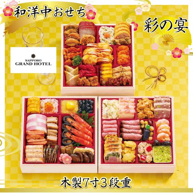 おせち 料理 予約 お節 2026 札幌グランドホテル 彩の宴 3段重 44品 約4〜5人前 送料無料 【二重包装不可】【着不可地域:沖縄・離島・諸島】【12月30日着】【時間指定不可】 お取り寄せ 通販 お土産 お祝い プレゼント ギフト おすすめ