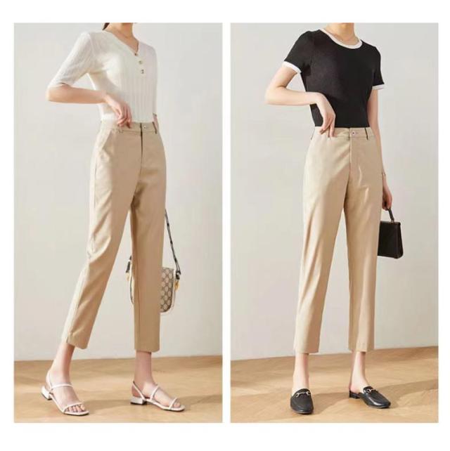 | これからの春や夏には最適なテーパードパンツ。 すらっとした美脚を自然に叶えてくれます! シワにくい素材でいつでもおしゃれできちんとした印象を演出してくれます。 身体にフィットしすぎないサイズ感なので、体型を拾わず着用頂けます。 セットアップ対応としてもおすすめのスーツパンツ。 | |