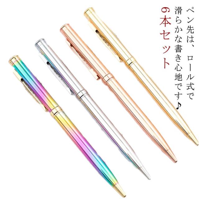 ボールペン 6本セット 高級感 お祝い プレゼント ビジネス オフィス 入学 卒業 就職 ギフト ロール式 雑貨 文具 文房具 かわいい おしゃれ 記念品 贈り物 記念品 誕生日 友達 彼女 ゴールド シルバー ローズゴールド 送料無料