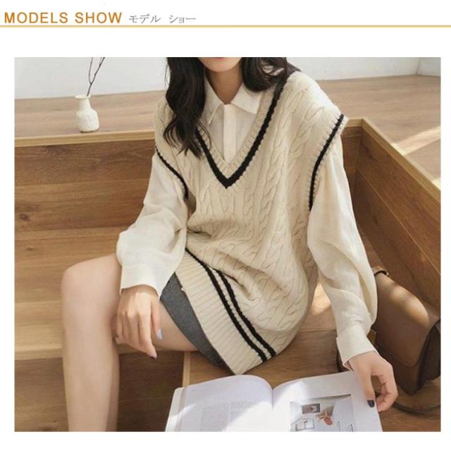 【送料無料】チルデンニットベスト レディース ニットベスト Vネック ライン入り ケーブル編み ニットセーター ノースリーブ トップス プルオーバー 秋服 秋物 オーバーサイズ ゆったり レイヤード 重ね着 おしゃれ