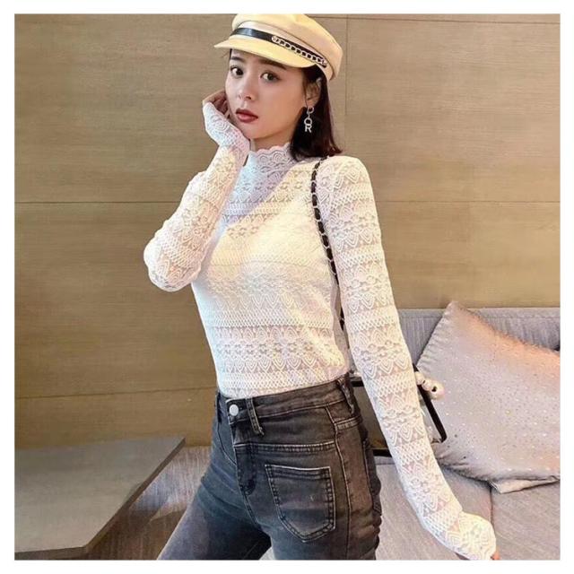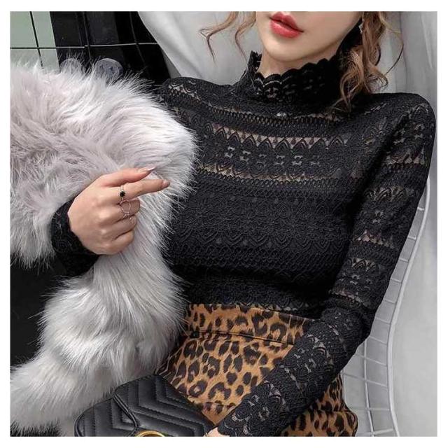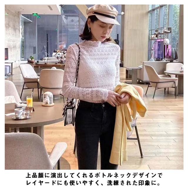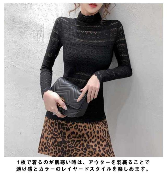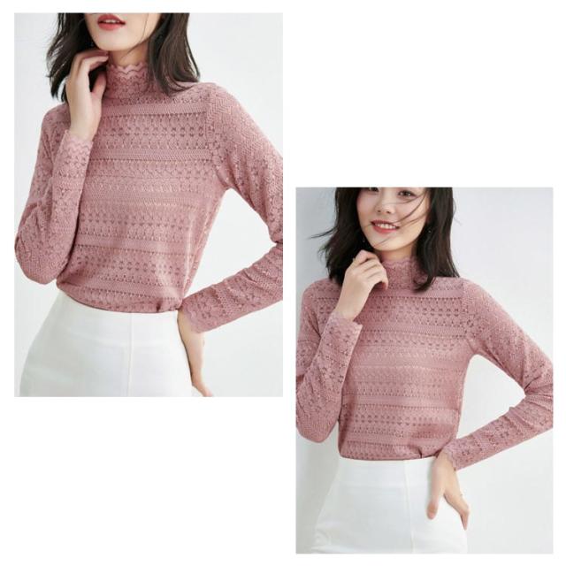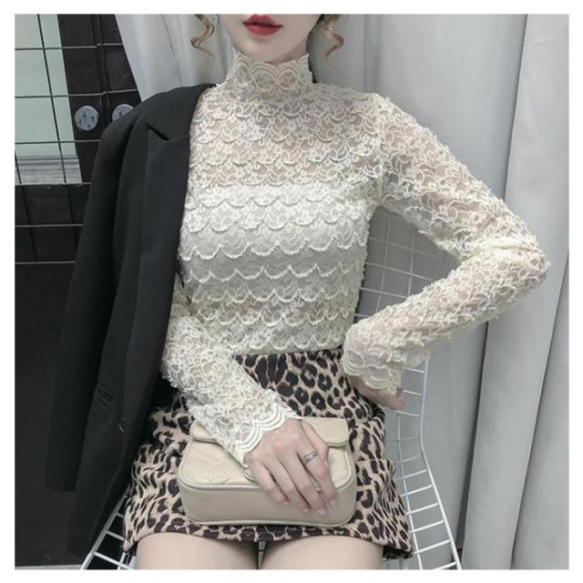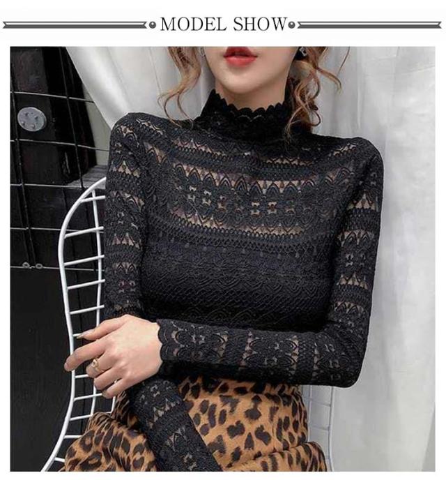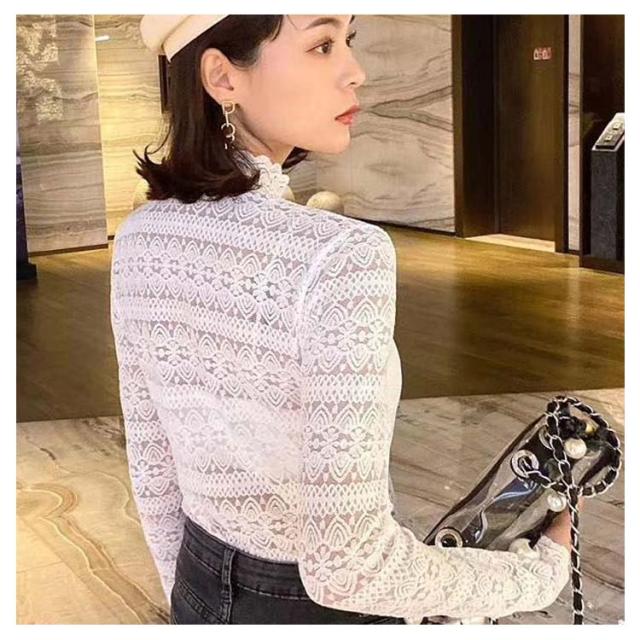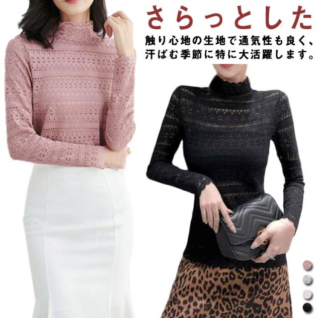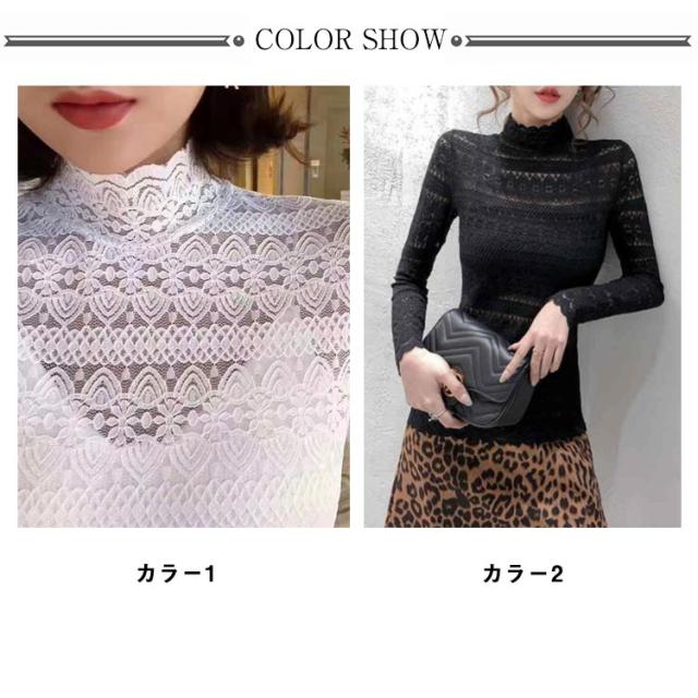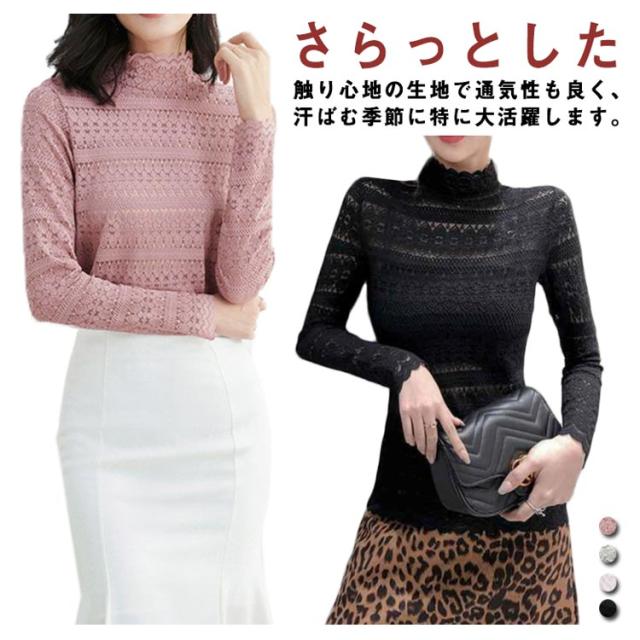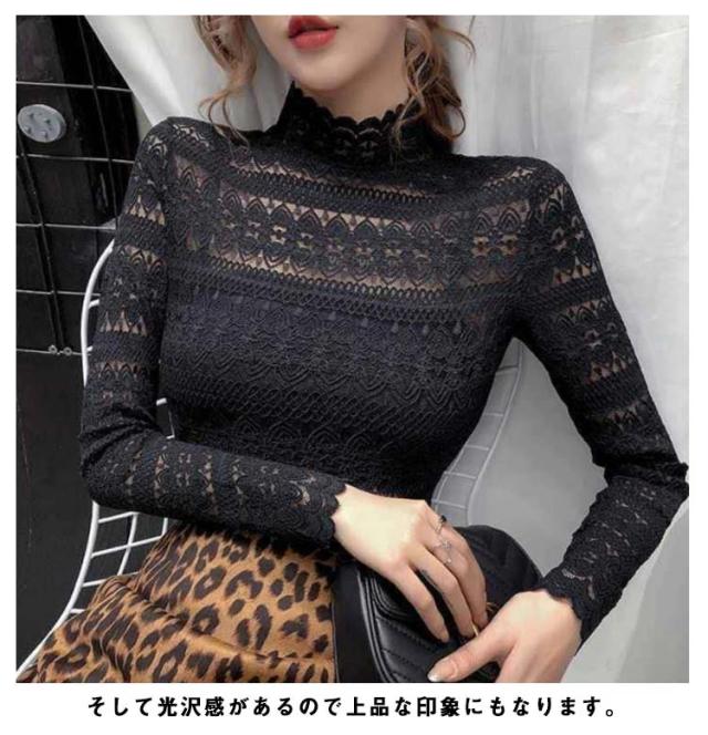 送料無料 ハイネック シャツ ブラウス Tシャツ レディース 長袖 インナー レース 花柄 韓国 長袖 通勤 OL レース トップス レース ブラウス 立ち襟 透け感 重ね着 シースルー 花柄 レディース ファッション セクシー ギフト 無地 上品 30 40 20 50 代