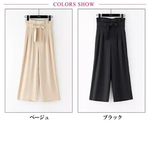 シフォンワイドパンツ ガウチョパンツ ウエストリボンベルト ウエストリボン 前垂らし ワイドパンツ タック入り ロング丈 ガウチョ パンツ ボトムス ワイドパンツ リボンベルト レディース 秋冬 送料無料