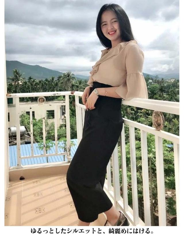 | リラックスしながらもおしゃれに見えるシルエット自慢のガウチョパンツ。 着心地の良いポリエステルを使用。 ゆるっとしたシルエットと、綺麗めにはける。 足元を細く見せてくれる丈感とハイウエストで美脚シルエットがアップ。 | |