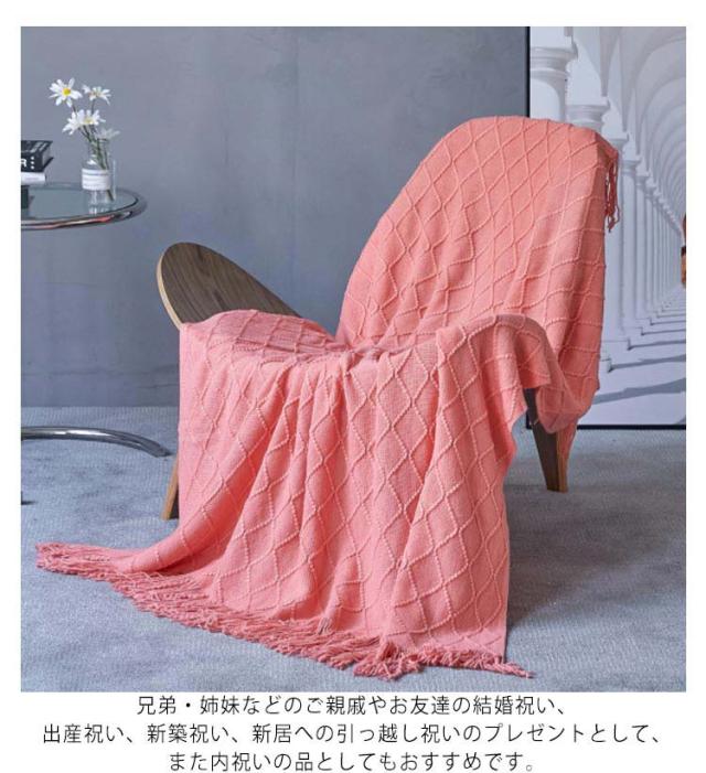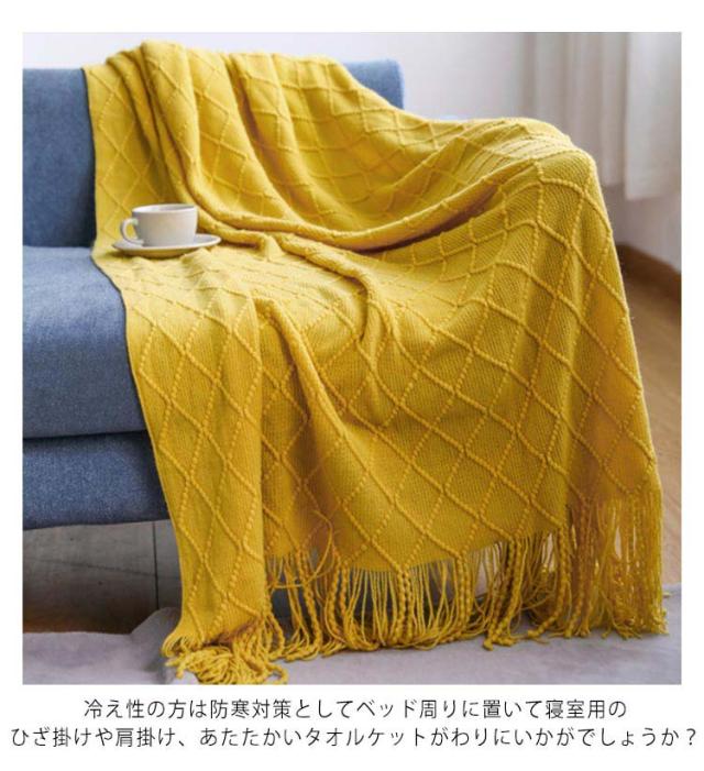 | 大きいサイズの毛布 127×152cmの大判ブランケットは秋冬用の寝具としてはもちろん、夏用の冷房・寒さ対策の膝掛けとしてオフィスでの使用など、さまざまなシーンで活躍します。 おしゃれなブランケット 上品で高級感のあるケーブル編み、サイドにはフリンジ付きのおしゃれな北欧風ブランケット。 ソファベッドなどにサッとかけるだけでソファーカバーやスロー、ベットカバーとしても使えます。 どんなインテリアにもマッチ♪ ソファ用毛布としてリビングのソファーやベンチチェアにソファカバーを敷くだけでファミリーのくつろぎ時間がワンランクアップするマルチカバー! 子供部屋や書斎の一人用チェアカバーなど洋室、和室を問わず使えます。 冷え対策・防寒対策に 冷え性の方は防寒対策としてベッド周りに置いて寝室用のひざ掛けや肩掛け、あたたかいタオルケットがわりにいかがでしょうか? 赤ちゃんの撮影用に 編み地がかわいいスローケットはベビーフォト用の小道具にも人気♪ ベビーバスケットや赤ちゃん布団に敷くだけで、映えるお昼寝アート用に使えます。 ギフトや贈り物に 春夏秋冬、四季を問わず使えるオシャレなファブリックはどなたにも喜ばれる贈答品です。 兄弟・姉妹などのご親戚やお友達の結婚祝い、出産祝い、新築祝い、新居への引っ越し祝いのプレゼントとして、また内祝いの品としてもおすすめです。 | |